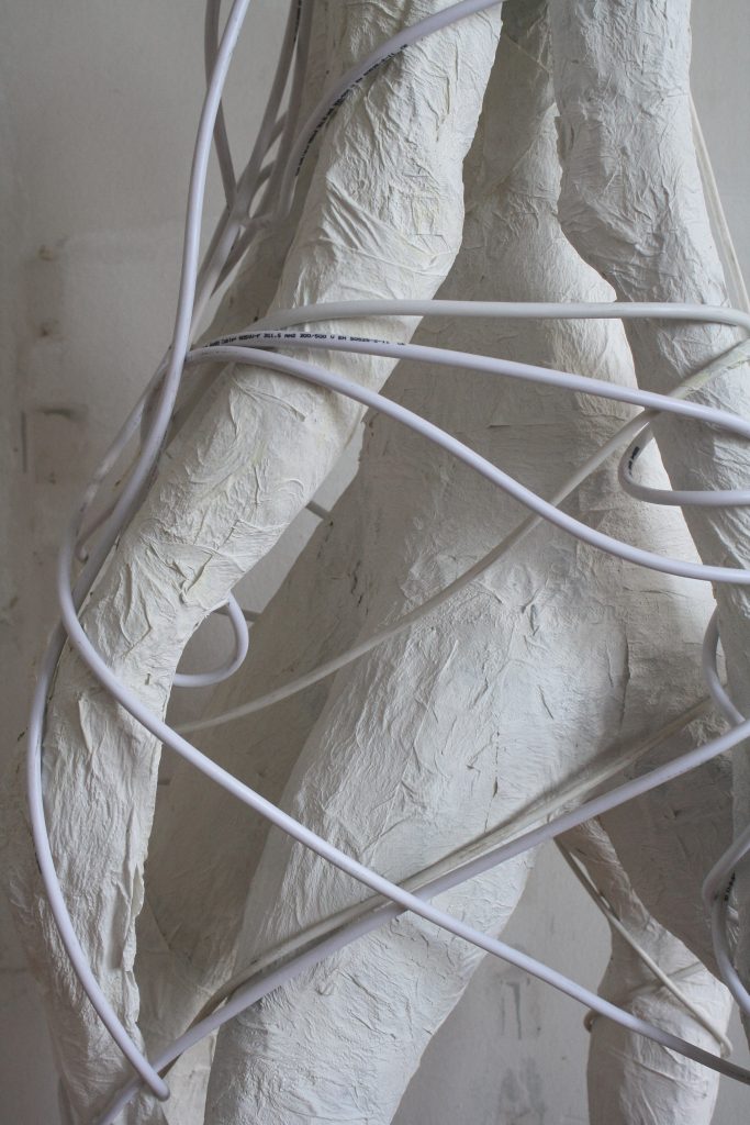 The electric cable encircling the body evokes the idea of technological entrapment: a human being immersed in a digitally mediated reality, losing authentic contact with self and others. Unknown is my attempt to articulate the tension between the longing for freedom and the awareness of its impossibility in contemporary society.