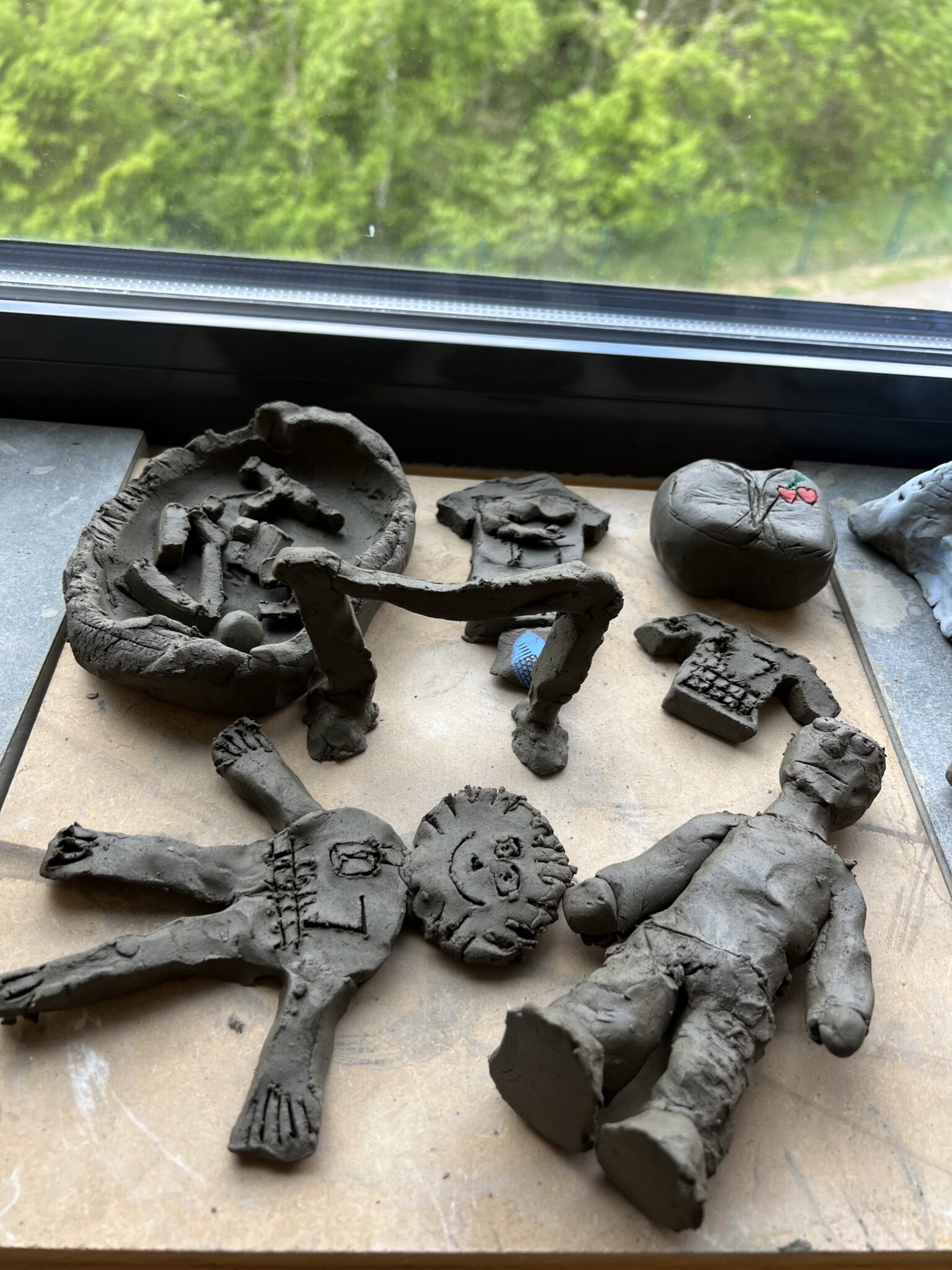 Recently, I had the opportunity to lead a project week at LYCÉENIC-BIEVER Dudelange, where I worked with students to explore the process of working with wild clay – from earth to form. Through our shared work, we observed how a natural material, found in its raw state, transforms under the hands of the participants – from raw earth into a supple mass ready for creation. The process involved collecting, cleaning, filtering, and drying the clay on plaster slabs, gradually turning soil into clay suitable for modelling.