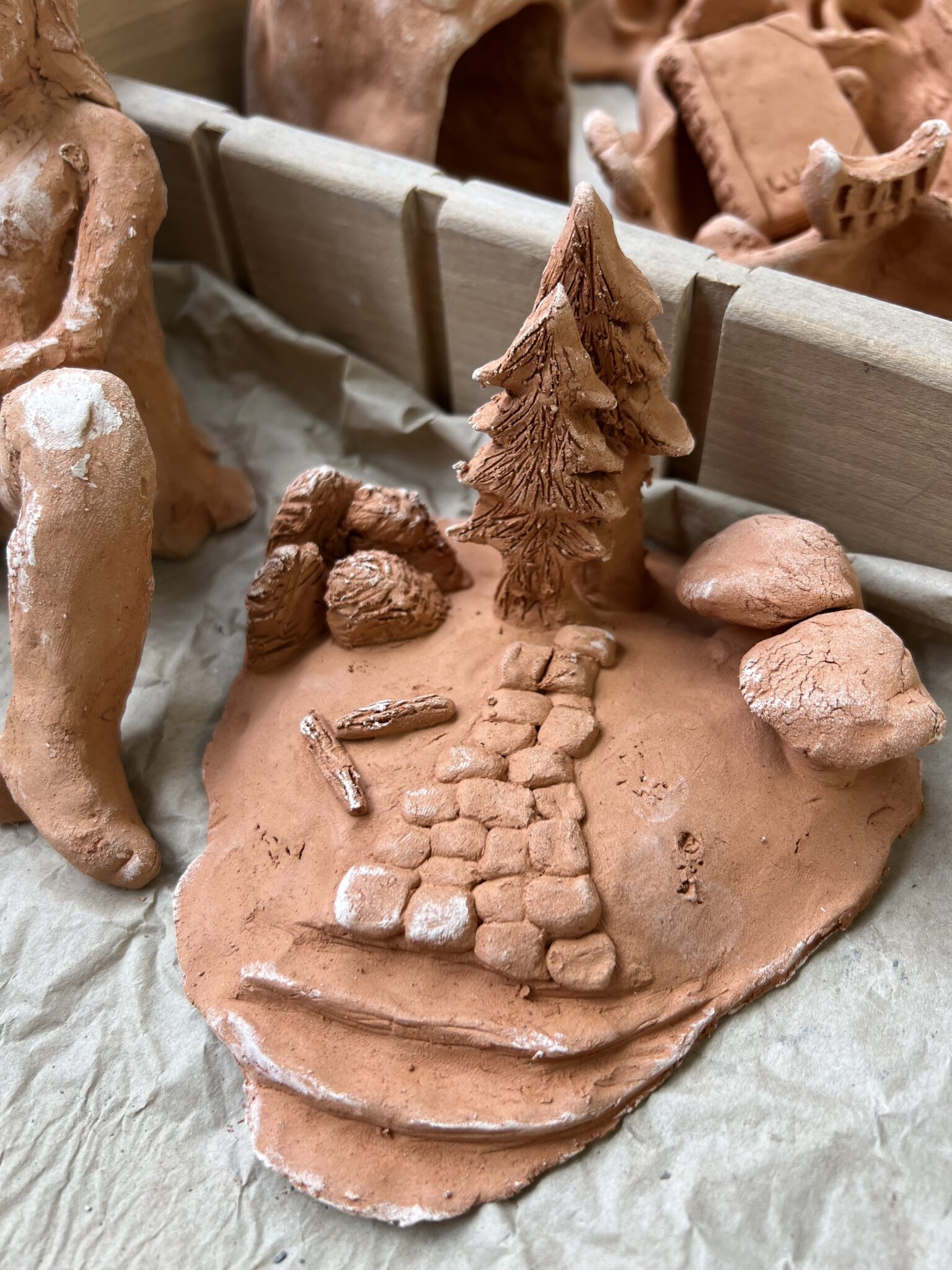 Participants are invited to engage with locally collected clay while listening to stories about the forests and landscapes from which the material originates. This experience, informed by personal narratives, forms the basis for creating three-dimensional objects inspired by memory and imagination. Together, these works form a map through clay – a materialisation of shared experience and a symbolic space for connection.